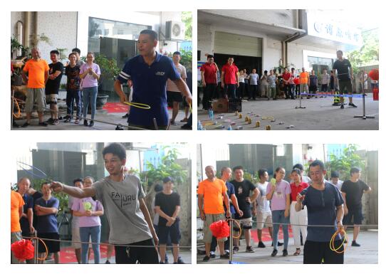 第二個環(huán)節(jié),兩人三足游戲,時間最短的前三個團隊,能得到公司給于的豐厚中秋佳禮。賽前同事們都積極找好自己的搭檔,并提前鍛煉彼此的節(jié)奏和默契,商量好比賽時的對策,為在比賽中能得到好成績而做準備,在比賽中,很多同事都為參與比賽的伙伴們加油打氣,比賽在熱情高漲的吶喊聲中結束,排名出來后,由總經(jīng)理為我們獲獎的同事頒發(fā)獎品。在這次比賽中,有很多值得我們認可和繼續(xù)發(fā)揚的精神,比如每個環(huán)節(jié)負責人的辛苦付出精神,同事們積極參與比賽的熱情,同事之間賽前準備中的商量協(xié)作與配合,比賽中同事們?yōu)榱四繕藠^力沖刺的精神,比賽后兩位同事自動說明比賽結果出錯的誠實奉獻精神,都是我們博原這個大家庭所有同事的良好品格的體現(xiàn),都是值得大家學習的,我們無論工作還是生活都得誠信做人,實事求是,也體現(xiàn)我們的價值觀:做事先做人,出品即人品。