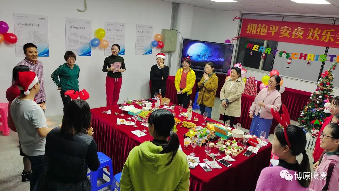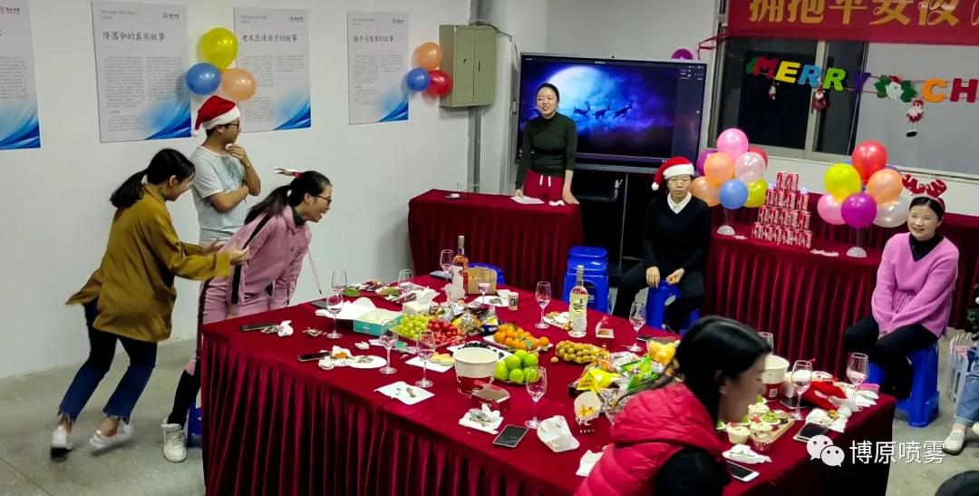 12月24日晚,歡笑聲、音樂(lè)聲、充滿了整個(gè)博原噴霧廠區(qū)。為豐富員工的文化生活,營(yíng)造良好的圣誕節(jié)日氛圍,促進(jìn)員工之間的溝通和交流,公司組織開(kāi)展了2020年圣誕節(jié)狂歡Party。