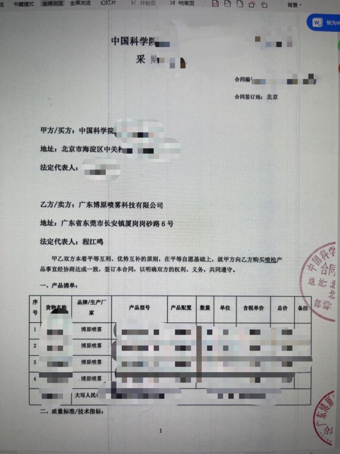 2021年10月廣東博原噴霧科技有限公司與中國(guó)科學(xué)院簽訂合作協(xié)議,為中科院提供噴嘴打樣生產(chǎn)服務(wù),博原總經(jīng)理葉總表示,將會(huì)保質(zhì)保量完成訂單,為中國(guó)航天工程提供一份力量。