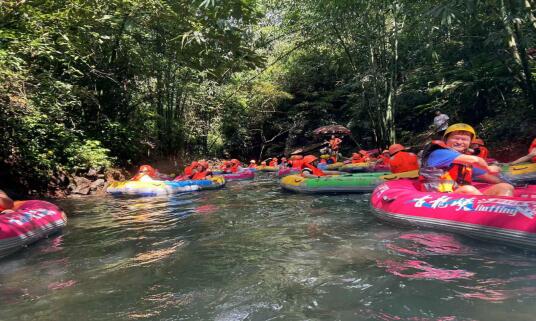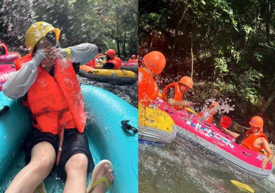 小伙伴們乘著皮艇順流而下,穿梭在蜿蜒流動(dòng)的河溪中,四面青山環(huán)繞,漂流其間,迎面而來(lái)的涼風(fēng)和水珠沖刷掉了夏日的酷熱。