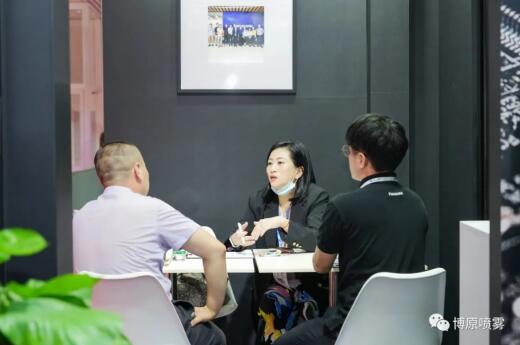 展會現(xiàn)場一直人氣旺盛,噴霧展示區(qū)人流絡(luò)繹不絕。眾多客戶經(jīng)過洽談交流之后,更深層次了解并認可了博原噴霧及松下電器最新的推出市場強力霧化加濕系統(tǒng),并表達了強烈的合作意向。此外,展位現(xiàn)場,還吸引了不少媒體前來拍攝采訪!