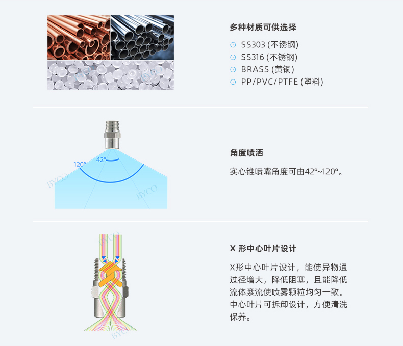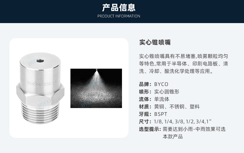 液滴大小為小到中等,分布均勻,壓力和流量適用范圍廣。