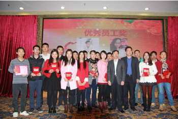 華南生物對2015年度優秀員工、優秀經理、優秀部門、銷售精英等進行了表彰和頒獎,并鼓勵他們戒驕戒躁,在新的一年起到模范帶頭作用,做出新的貢獻。公司全體員工也為獲獎的優秀員工、優秀團隊等給予了最真誠的祝賀和最熱烈的掌聲。