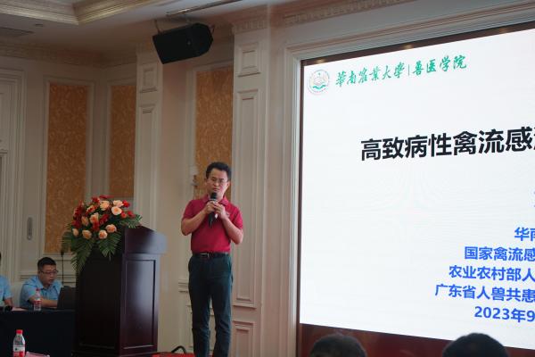 華南農業大學賈偉新教授做“高致病性禽流感流行現狀與防控建議”的主題報告。賈老師表示目前禽流感在國內外肆虐,同時介紹了國內外禽流感的流行現狀并提出了相關防控建議。賈老師建議高致病性禽流感的防控需要選擇優質的疫苗,加強生物安全防控,提高飼養管理水平,多措并舉才能將發病風險降到最低。