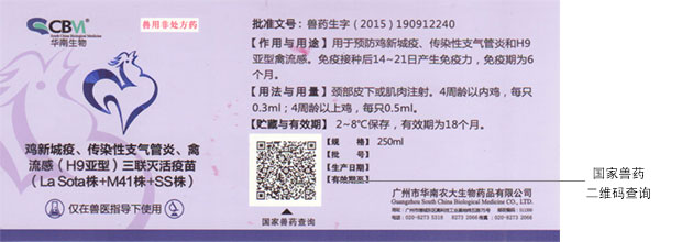 雞新城疫-傳染性支氣管炎-禽流感(H9)三聯滅活疫苗