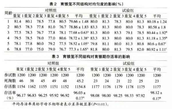 2.2 育雛籠不同結構對育雛期均勻度的影響