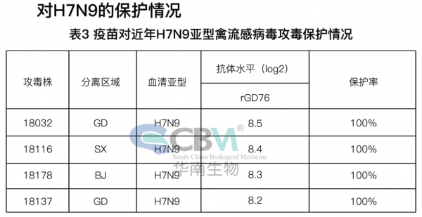 由廣州市華南農大生物藥品有限公司生產的重組禽流感病毒(H5+H7)三價滅活疫苗(H5N2 rSD57株+rFJ56株,H7N9 rGD76株)具有全禽源、全基因、全新變異株、全覆蓋最新H5和H7高致病禽流感病毒以及華南農業大學獸醫學院全程深度技術合作等五大優勢,無論在毒株匹配性、抗原含量還是免疫應激等方面都是您的首選。