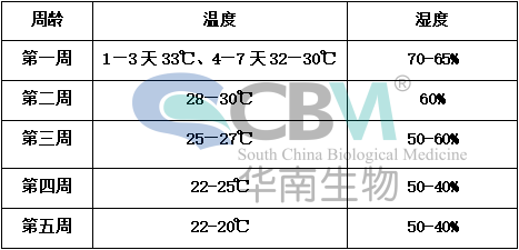 雞只周齡不同,需要的溫度也不同,各周齡適宜的溫度(在相對濕度達標的前提下)。