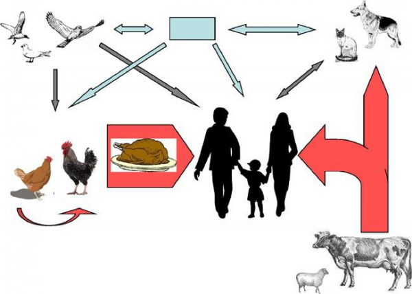 圖1.空腸彎曲菌感染人類的重要途徑。