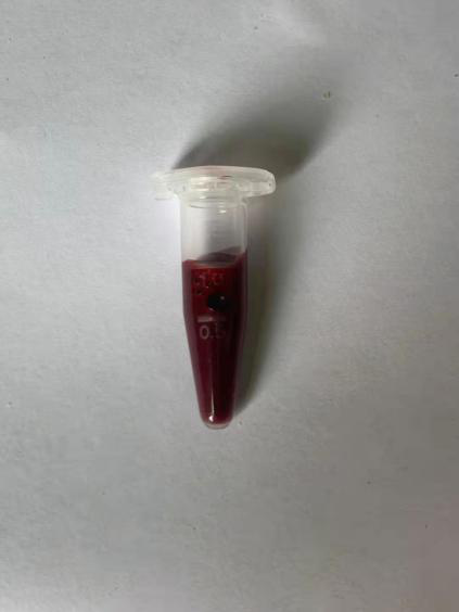 4、采集完畢后,盡快將針管里的血液注射入無菌塑料微型離心管中,蓋上離心管蓋,將離心管平放在避光常溫處靜止一段時(shí)間(一般需要20分鐘以上),直至血清析出。